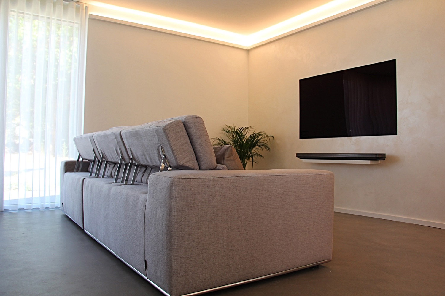Die Intention unserer Kundinnen und Kunden beim Planen und Errichten ihres modernen Neubaus war klar definiert: Sie wünschten sich glatte, fugenlose Oberflächen für ein ruhiges, harmonisches Gesamtbild. Diese klare architektonische Linie sollte sowohl im Innen- als auch im Außenbereich konsequent umgesetzt werden – reduziert, elegant und zeitlos.